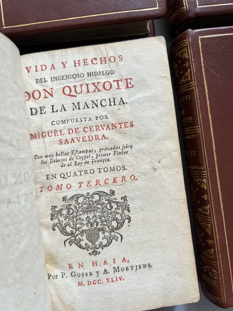- Título: Don Quixote de la Mancha - Miguel de Cervantes - P. Gosse y A. Moetjens, 4 Tomos. La Haya. 1744