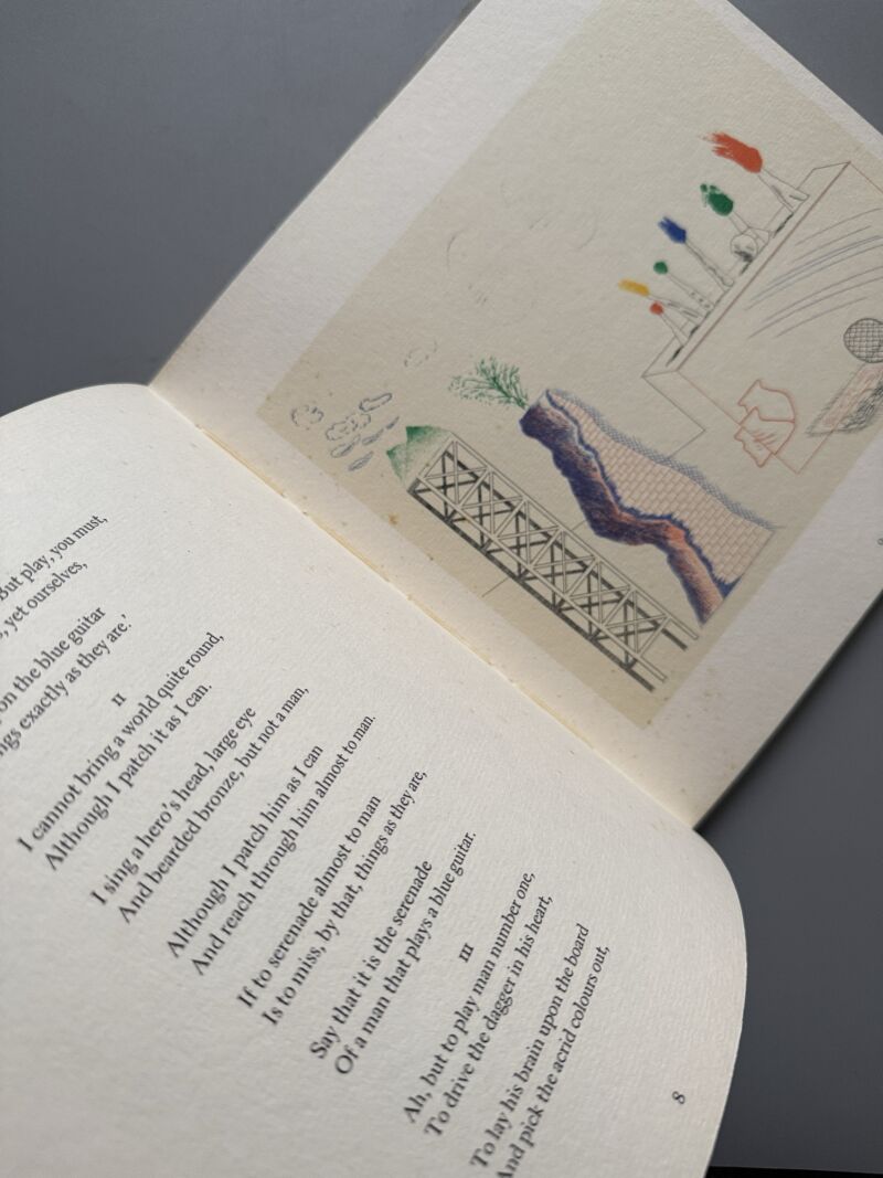 The blue guitar, David Hockney. The man with the blue guitar, W. Stevens - Petersburg Press, 1977