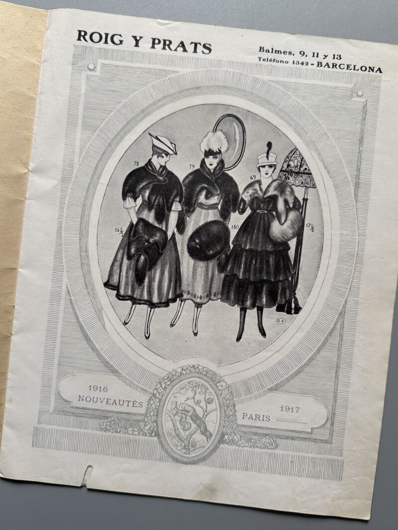 Observaciones: Catálogo Peletería Roig y Prats 1916-1917. Peletería situada en la calle Balmes 9, 11 y 13 de Barcelona. Medidas: 27 x 22cm. Editado en Barcelona..
