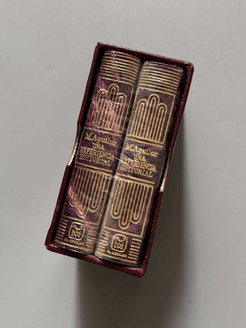 Observaciones: Crisolín nº036. Dos tomos. Encuadernación de lujo en plena piel y detalles dorados. Guardas en moaré y cortes dorados. Conservan el plástico editorial. En caja. Medidas: 8,5 x 6,5cm. Editado en Madrid..