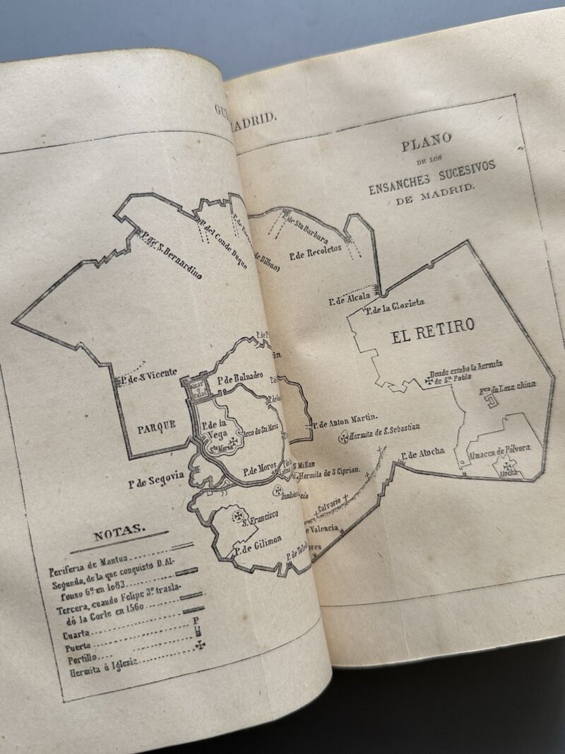 Observaciones: Manual del madrileño y del forastero. Contiene más de 150 vistas y otros grabados, 10 planos parciales en nergo y tres de Madrid al cromo..