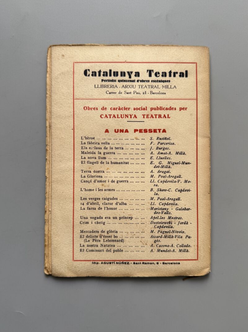 El comissari del poble, A. Mundet y A. Millà. Guerra Civil - Llibreria Millà, 1936