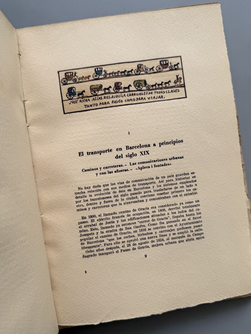 El transporte en la vida barcelonesa 1800-1900. Especial, coloreado a mano - Llibreria Millà, 1946