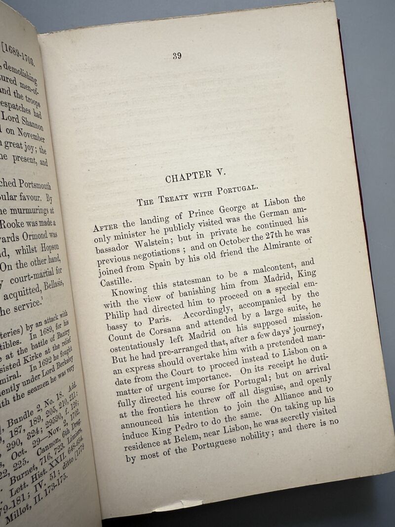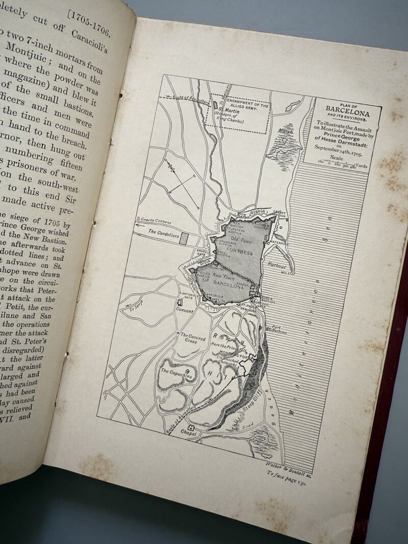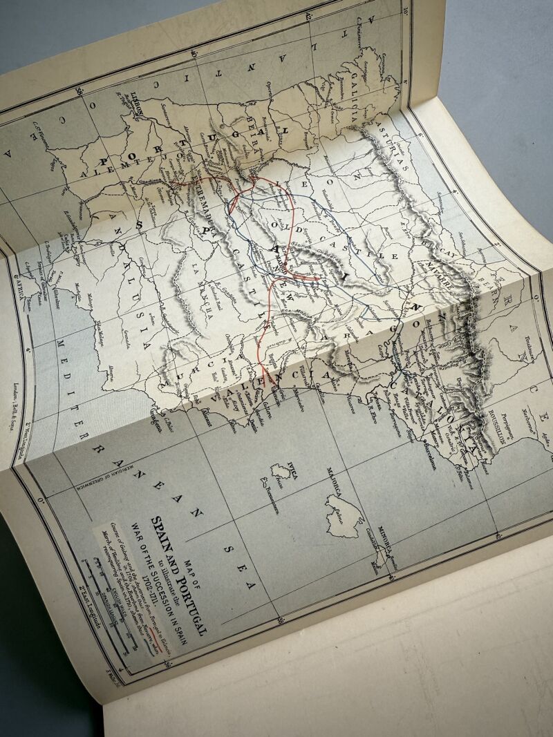 Observaciones: The war of the succession in Spain during the reign of queen Anne 1702-1711, based on original manuscripts and contemporary records. Notas manuscritas en la portada interior. Mapa desplegable. Encuadernado en tela editorial. Medidas: 22,5 x 15,5cm. Editado en Londres..