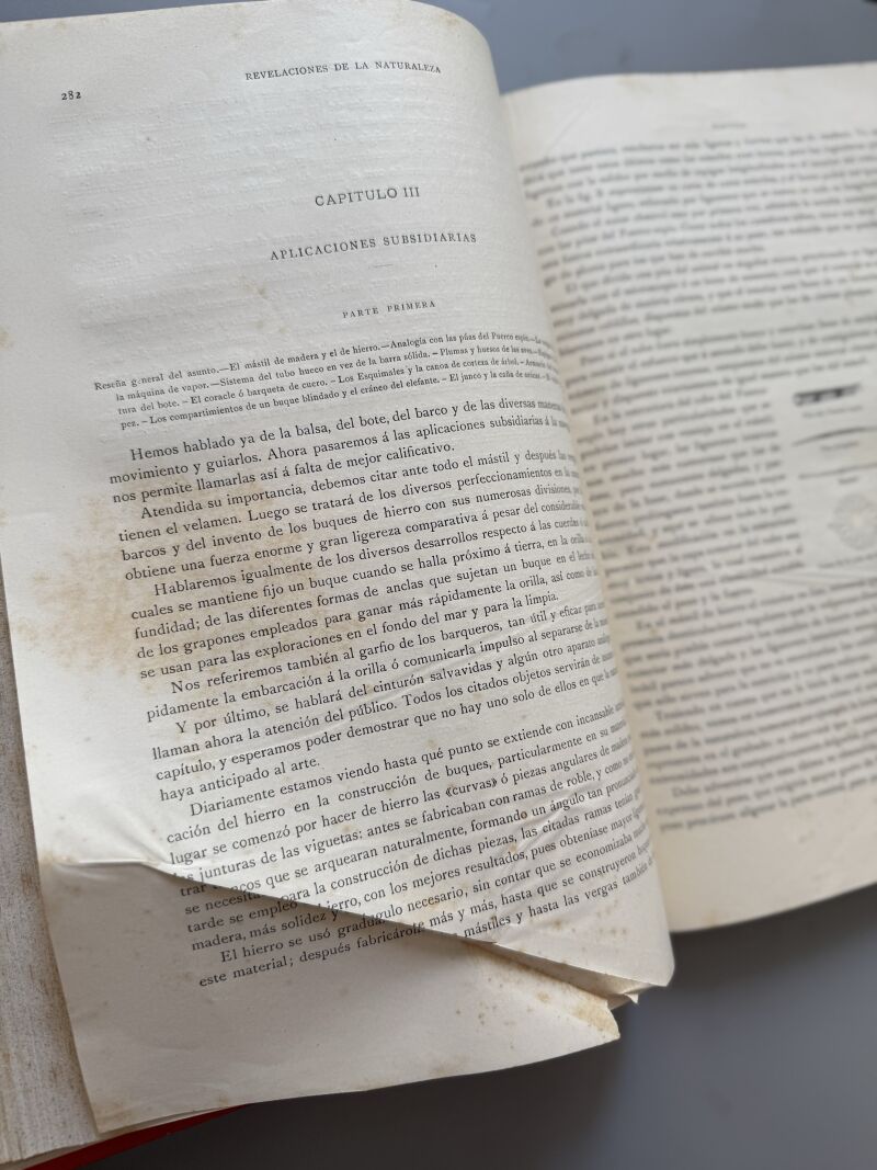 Observaciones: Revelaciones de la naturaleza. Edición ilustrada con numerosos grabados. La página 282 está mal cortada y por ello tiene esa doblez. Medidas: 23 x 32cm. Editado en Barcelona..