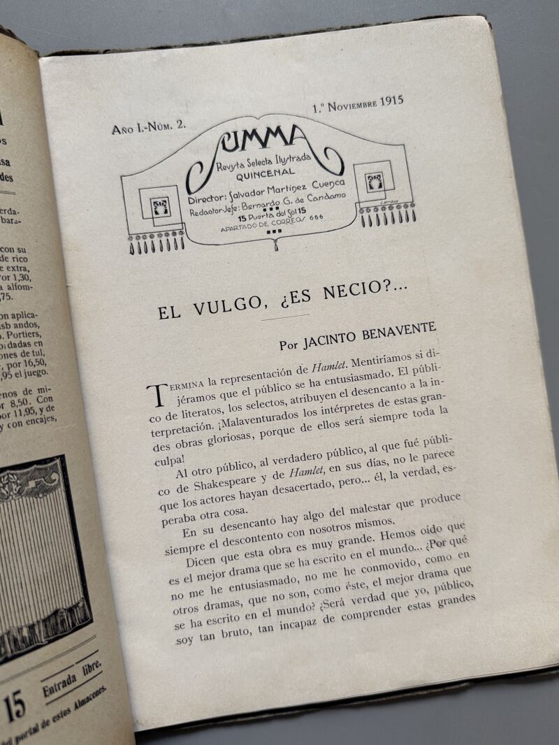 Summa, Revista Selecta Ilustrada. Valle-Inclán, Manuel Machado, Jacinto Benavente - Año I, nº2, 1915