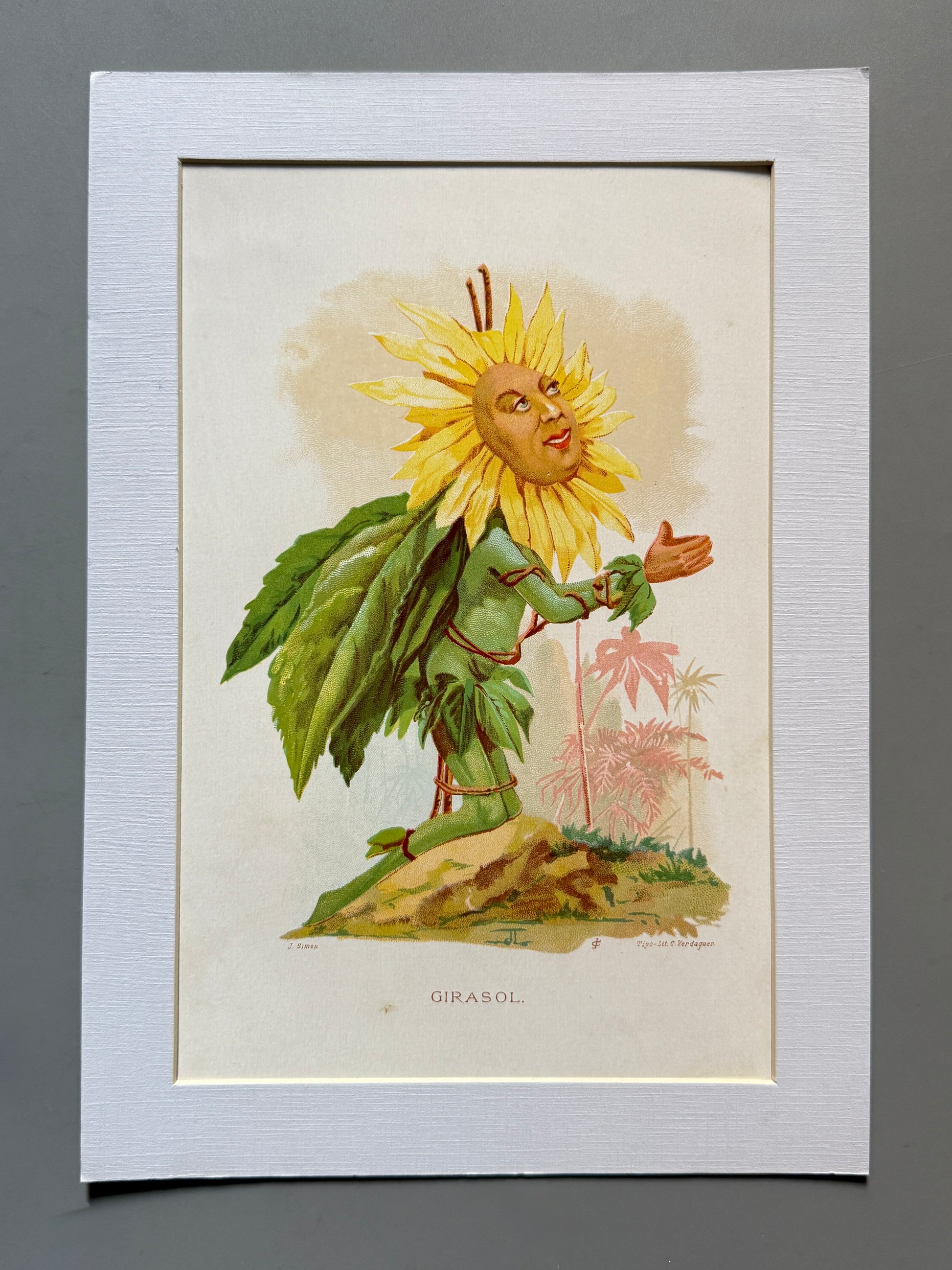 Girasol. Cromolitografía procedente de la obra "La vida de las flores" editada por Tipo-litografía Verdaguer en 1878. Incluye Paspartú, A4.