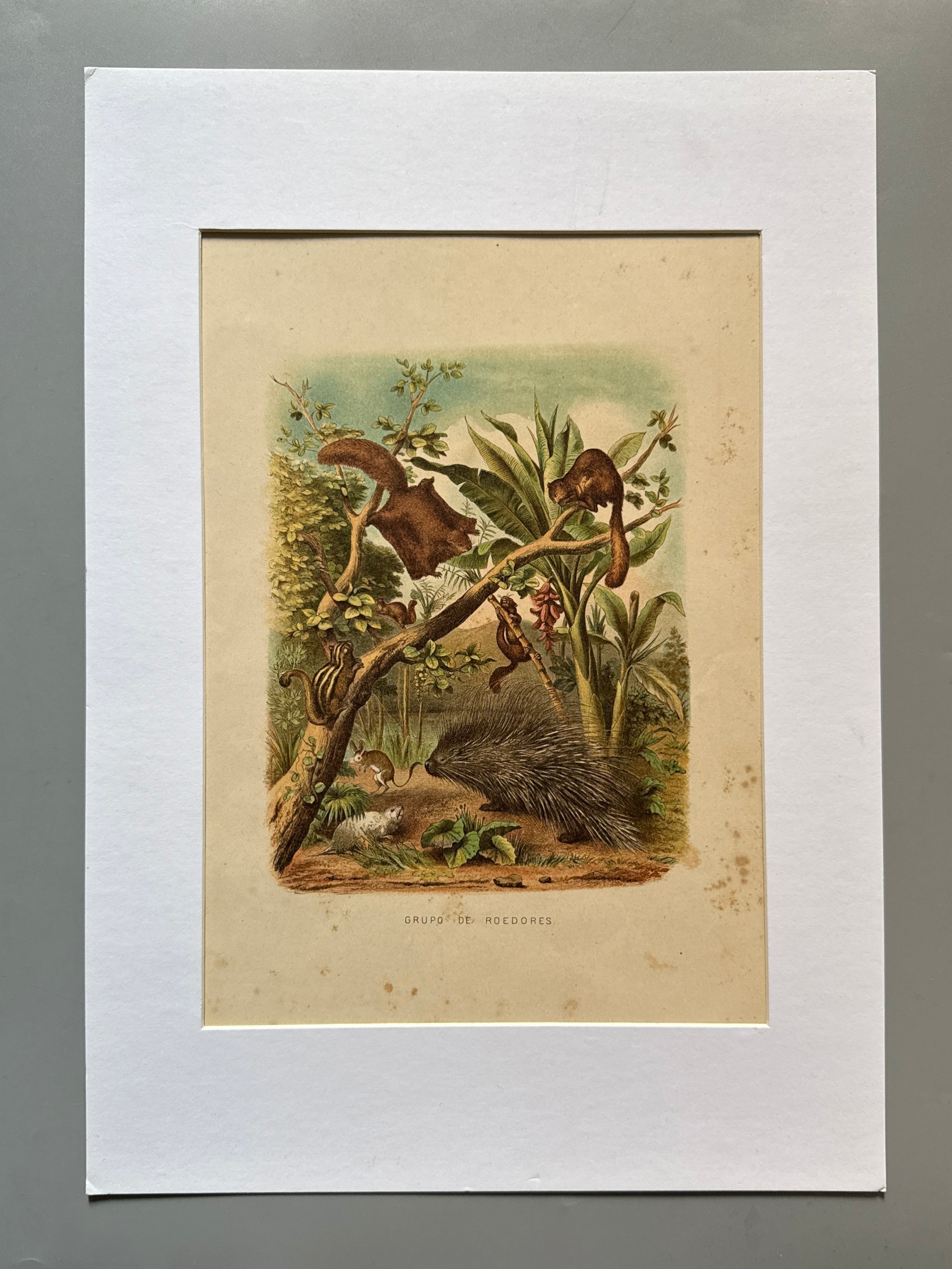 Grupo de roedores. Cromolitografía procedente de la obra "Historia Natural" editada por Montaner y Simón en 1876. Incluye Paspartú, A3.