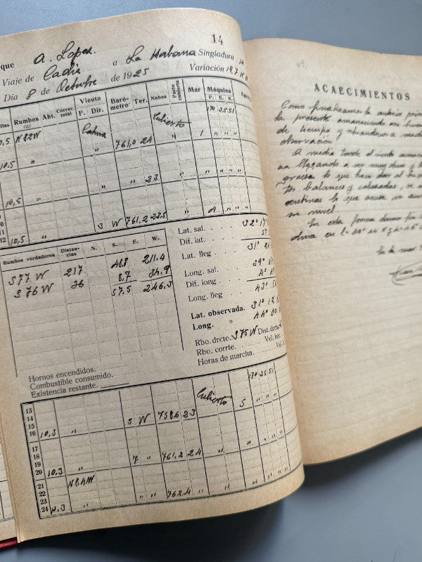 Diario de navegación Vapor Antonio López + postal. Barcelona, La Habana, Nueva York - 1925