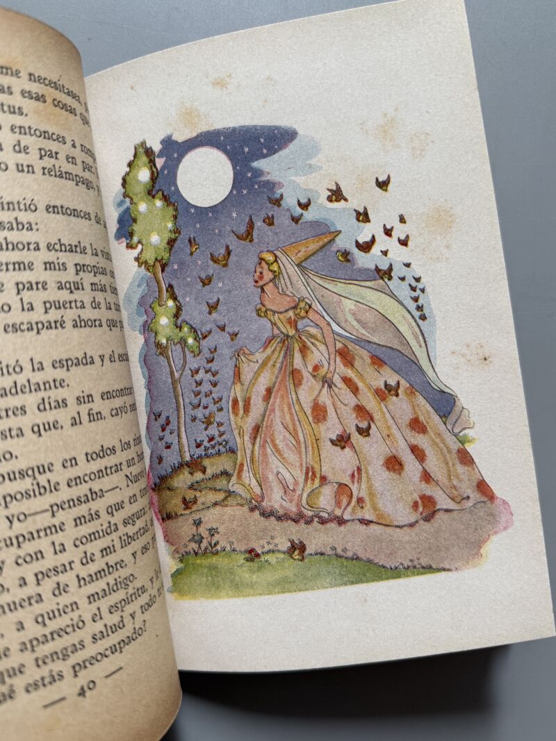 Observaciones: Adaptación infantil de algunas "musas lejanas" por Marichu de la Mora. Láminas a color. Conserva la sobrecubierta, encuadernado en tela editorial. Medidas: 18,5 x 12,5cm. Editado en Madrid, 1941..