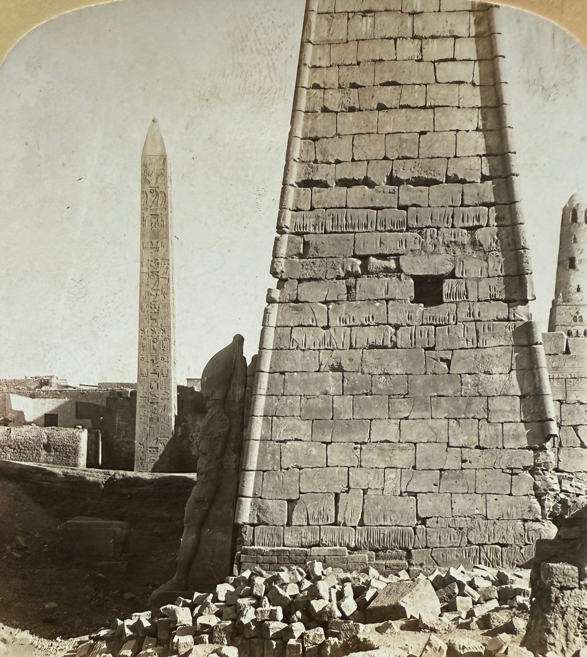 Fotografía estereoscópica Pilón y obelisco, Templo de Luxor, Egipto - Imprerial Series, ca. 1901