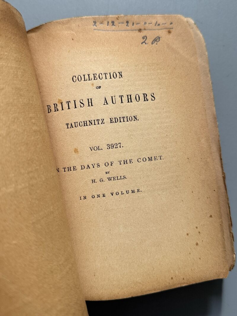 In the days of the comet, H. G. Wells - Bernhard Tauchnitz, 1906