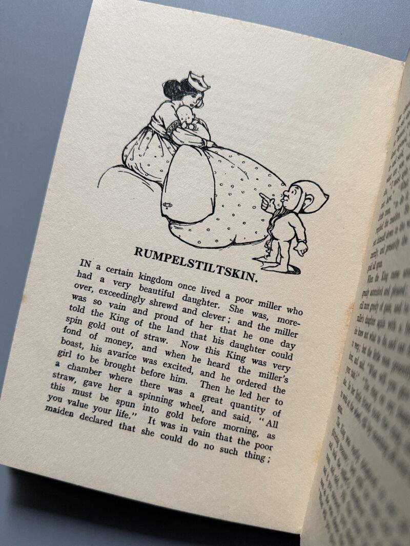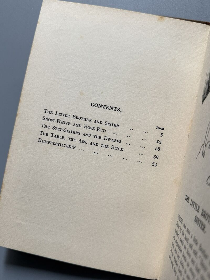 Observaciones: Cuentos de los hermanos Grimm. ilustraciones de Mabel Lucie Attwell, dos láminas a color. Encuadernación de cartoné. Medidas: 18,5 x 12,5cm. Editado en Londres, ca. 1900.