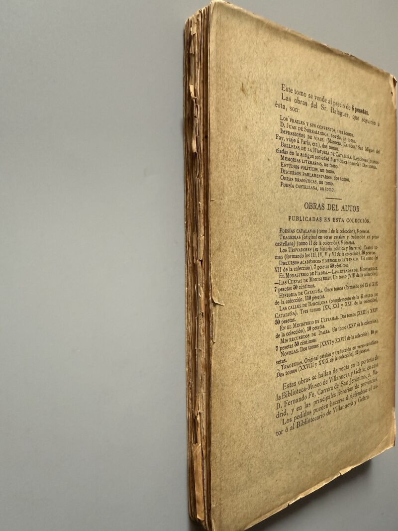 Observaciones: Primer tomo de las tragedias de Víctor Balaguer. Intonso. Encuadernación rústica. Medidas: 22 x 14cm. Editado en Barcelona..