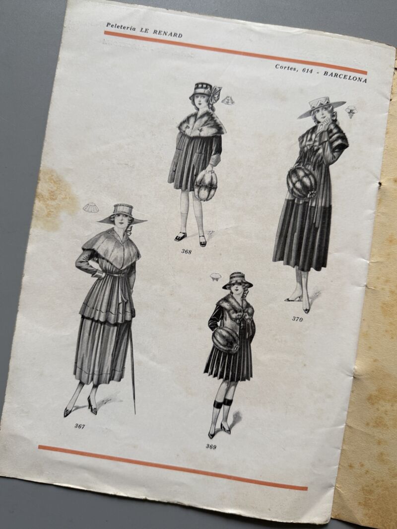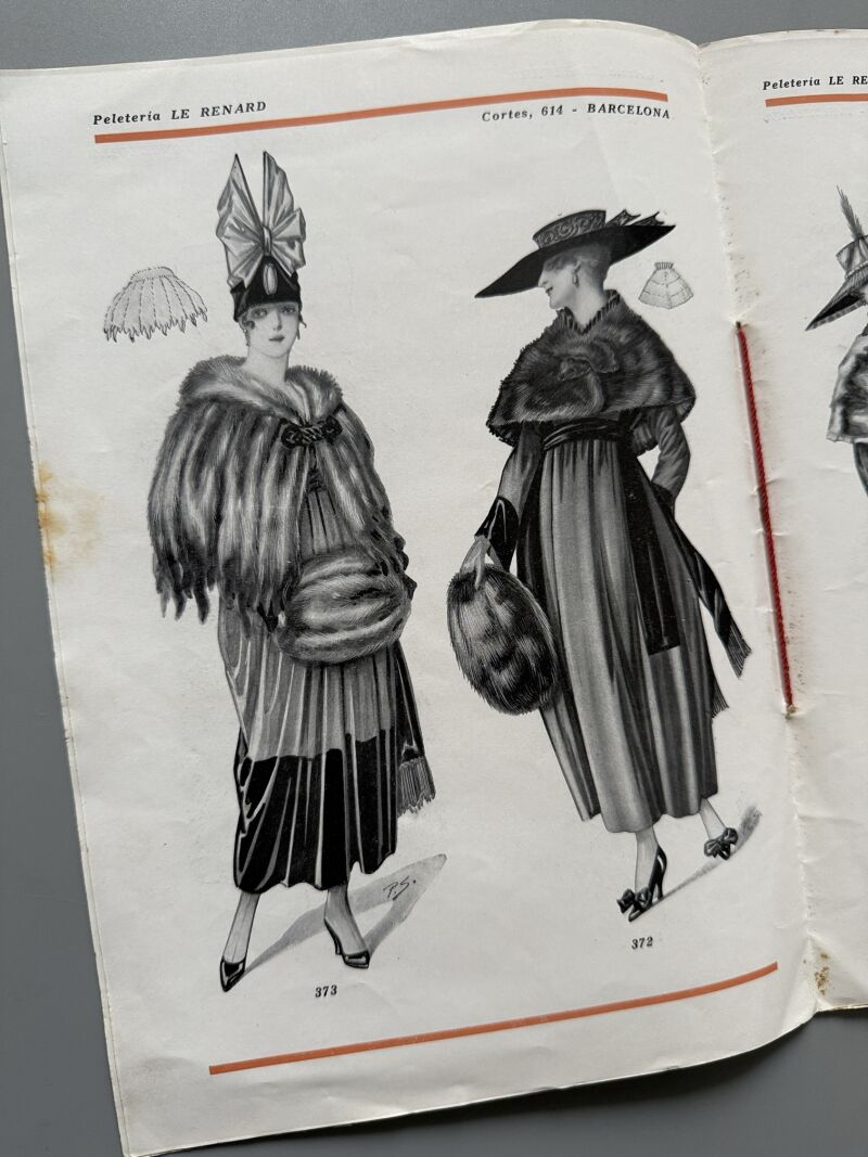 Observaciones: Catálogo de la peletería Le Renard, Barba, Fontanet y Cia, situada en Cortes, 614 de Barcelona. Medidas: 27,5 x 19,5cm. Editado en Barcelona, ca. 1920.