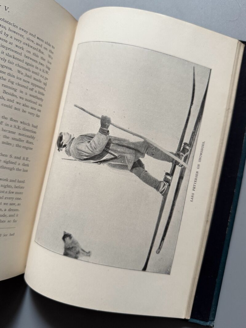 Observaciones: Being the record of a voyage of exploration of the ship Fram 1893-96 and of a fifteen months' sleigh journey by Dr. Nansen and Lieut. Johansen with an appendix by Otto Sverdrup captain of the Fram. About one hundred and twenty full page and text illustrations and coloured plate in facsimile from Dr. Nansen's own sketches. Dos volúmenes, completo. Encuadernado en tela editorial. Cortes dorados. Editado en Londres. Páginas: Tomo I 480/ Tomo II 456. Medidas: 23 x 17cm..