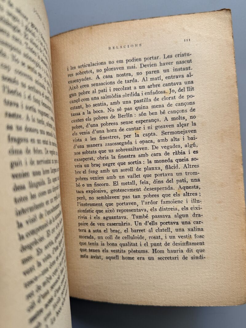 Relacions, Josep Pla (primera edición) - Llibreria Catalonia, 1927