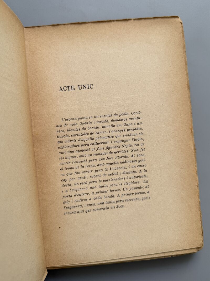 Observaciones: Comedia en un acto. Primera edición. Encuadernación rústica. Medidas: 20 x 14,5cm. Editado en Barcelona..