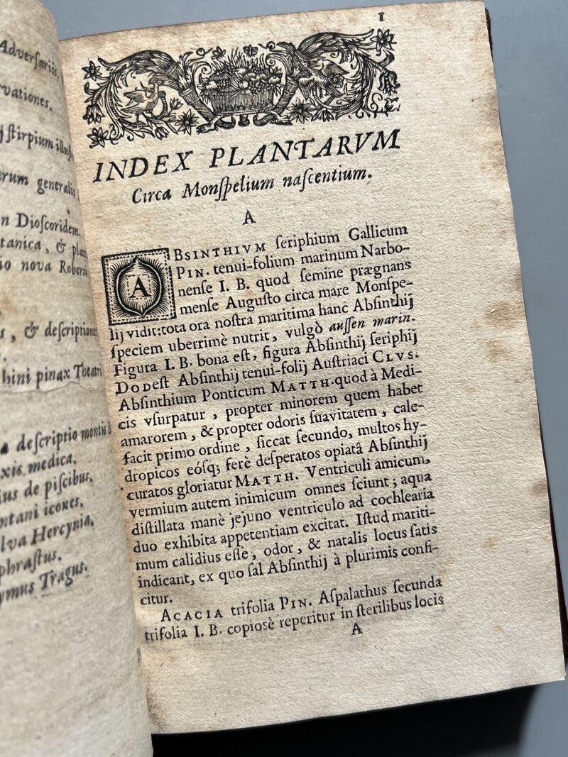 Observaciones: Botanicvm Monspeliense sive plantarvm Circa Monspelium nascentium protognomon In quo Plantarum Nomina meliora seliguntur.... PRIMERA EDICIÓN