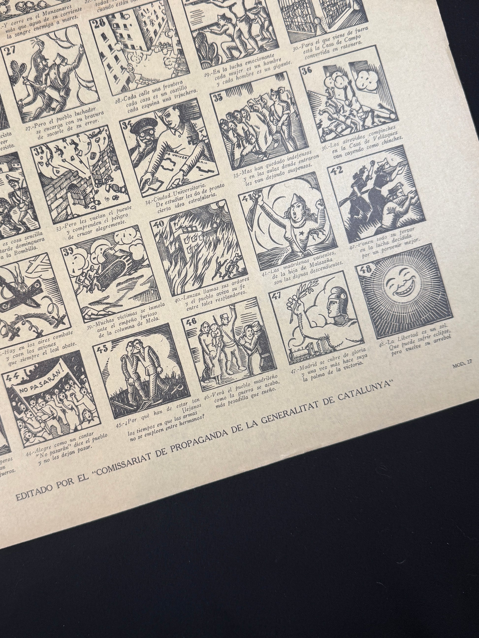"Aleluyas de la defensa de Madrid", auca/ aleluya original de la Guerra Civil. Editado por el Comissariat de Propaganda de la Generalitat de Catalunya, 1937. Medidas: 50 x 35,5cm.