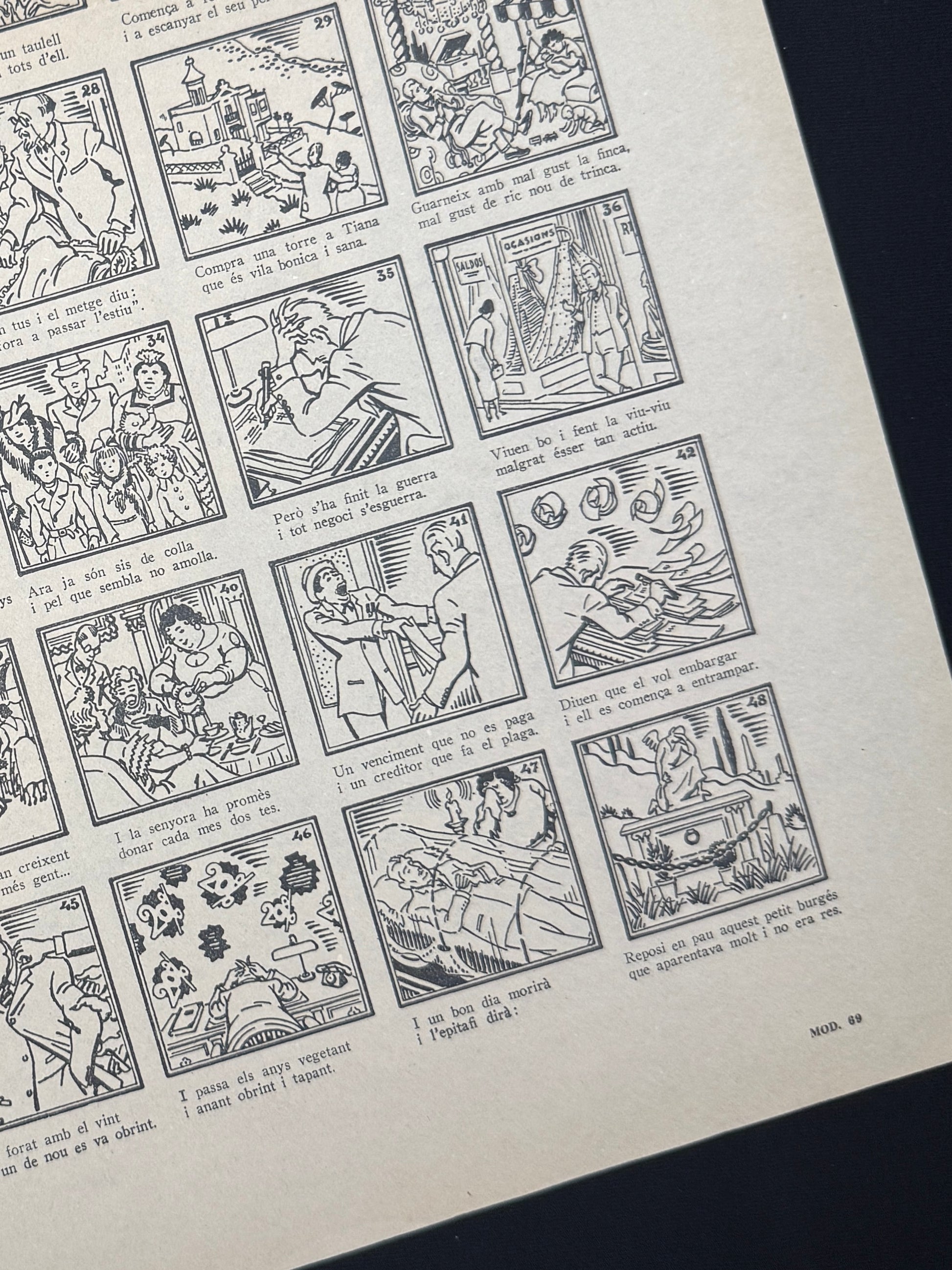 "Auca del petit burgés", auca/ aleluya original de la Guerra Civil. Nº9. Editado por el Comissariat de Propaganda de la Generalitat de Catalunya, 1937. Medidas: 50 x 35,5cm.