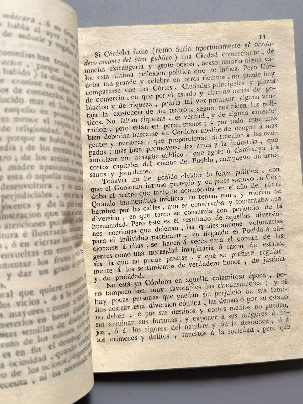 Observaciones: . "Al pueblo de Córdoba. Discurso político-moral contra el teatro, en que se deshacen las equivocaciones y falsas doctrinas, con que han pretendido alucinar al público varios articulistas". Medidas: 19,5 x 14,5cm. Editado en Córdoba.