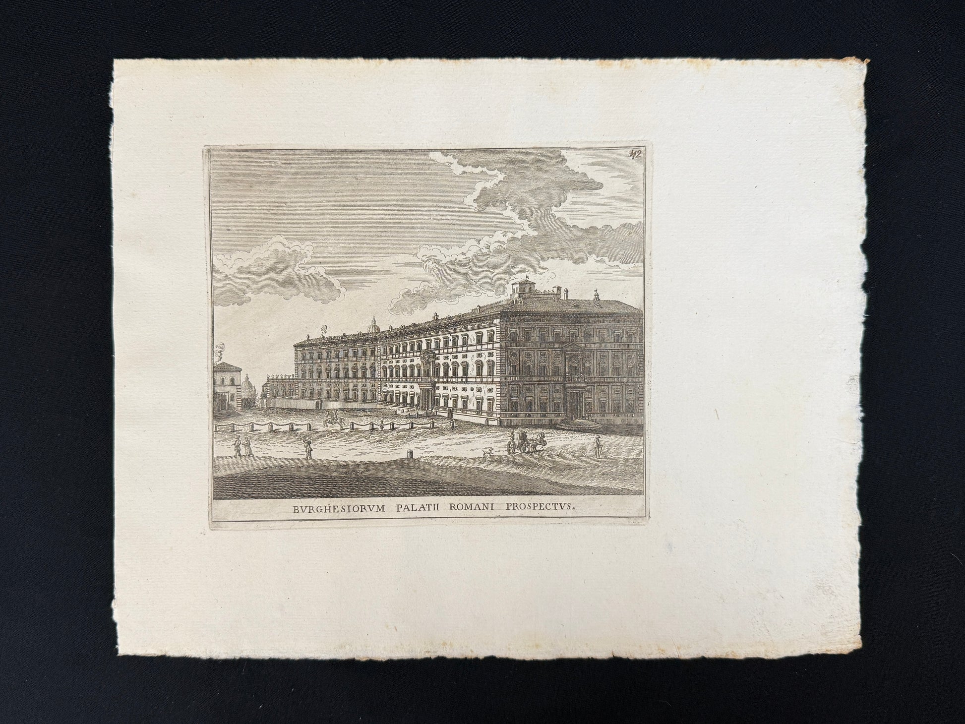Grabado del Palazzo Borghese (Il Cembalo). "Burghesiorum Palatii Romani Prospectus". Proviene de la obra "Calcografia degli edificazj di Roma", 1779. Medidas: 28 x 22cm aprox. Paspartú hecho a medida.