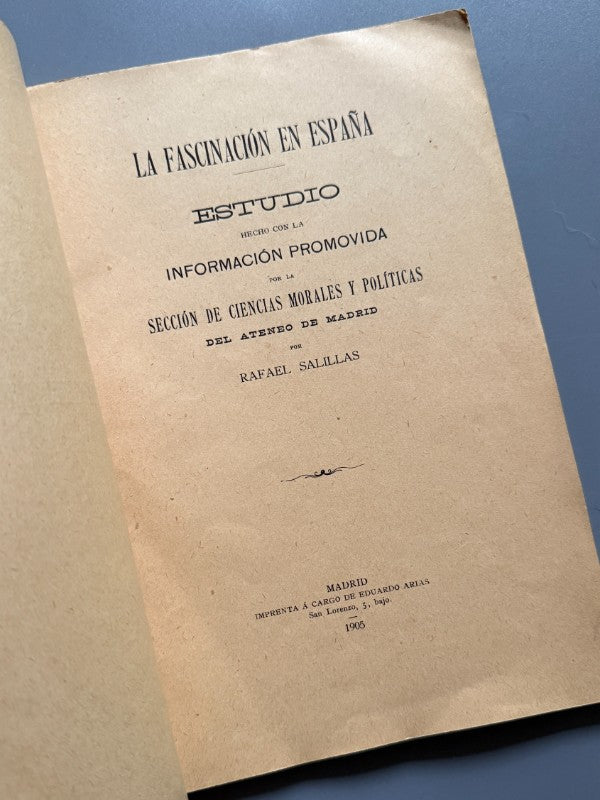 La Fascinación en España. Brujas - brujerías - amuletos, Rafael Salillas - Madrid, 1905