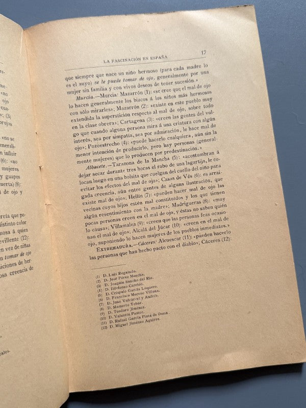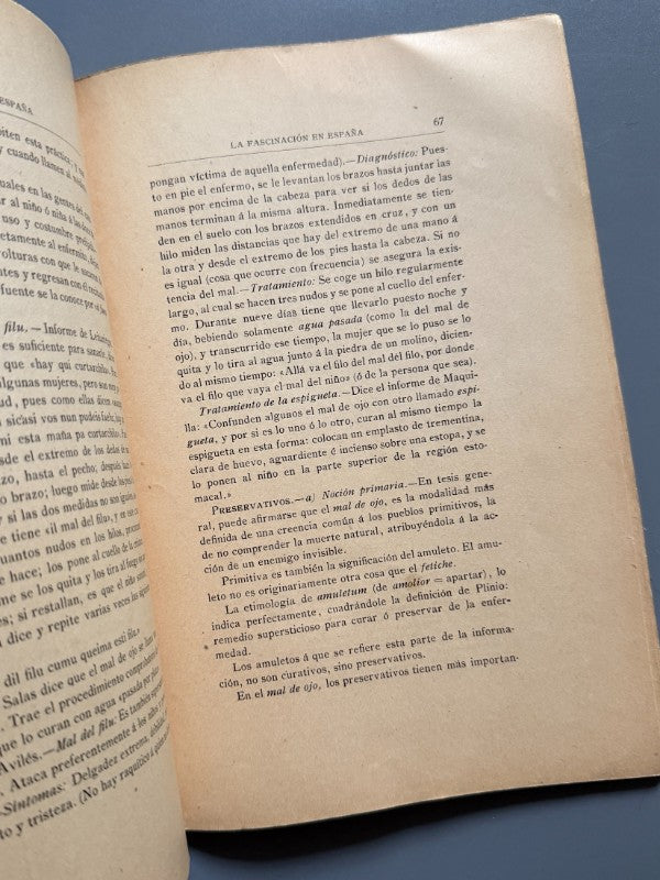Información adicional: Ensayo antropológico sobre la creencia en brujas, mal de ojo y amuletos en España. Encuadernación rústica. Medidas: 24 x 16cm. Editado en Madrid.