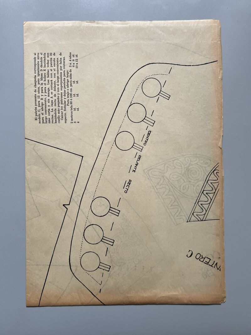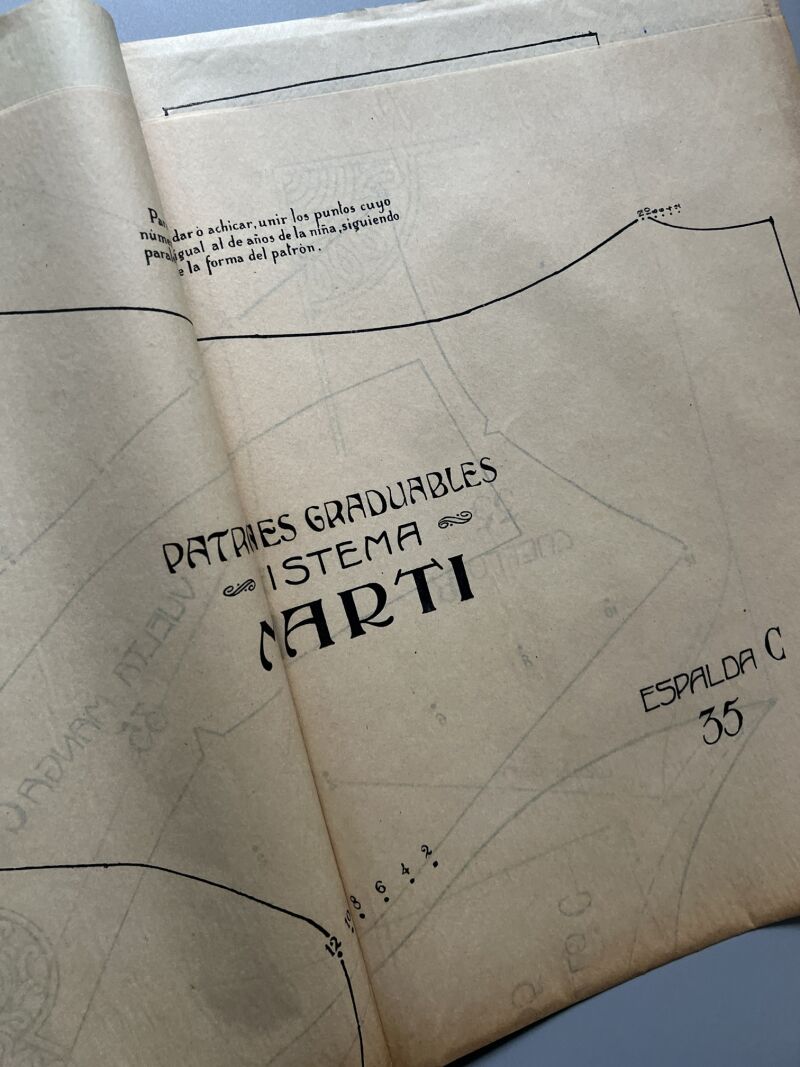 Observaciones: Lecciones sobre la moda. Patrones para traje niña nº35. Patrones graduables Sistema Martí. Desplegable. Medidas (sin desplegar): 40 x 28cm. Editado en Barcelona, ca. 1915-20..